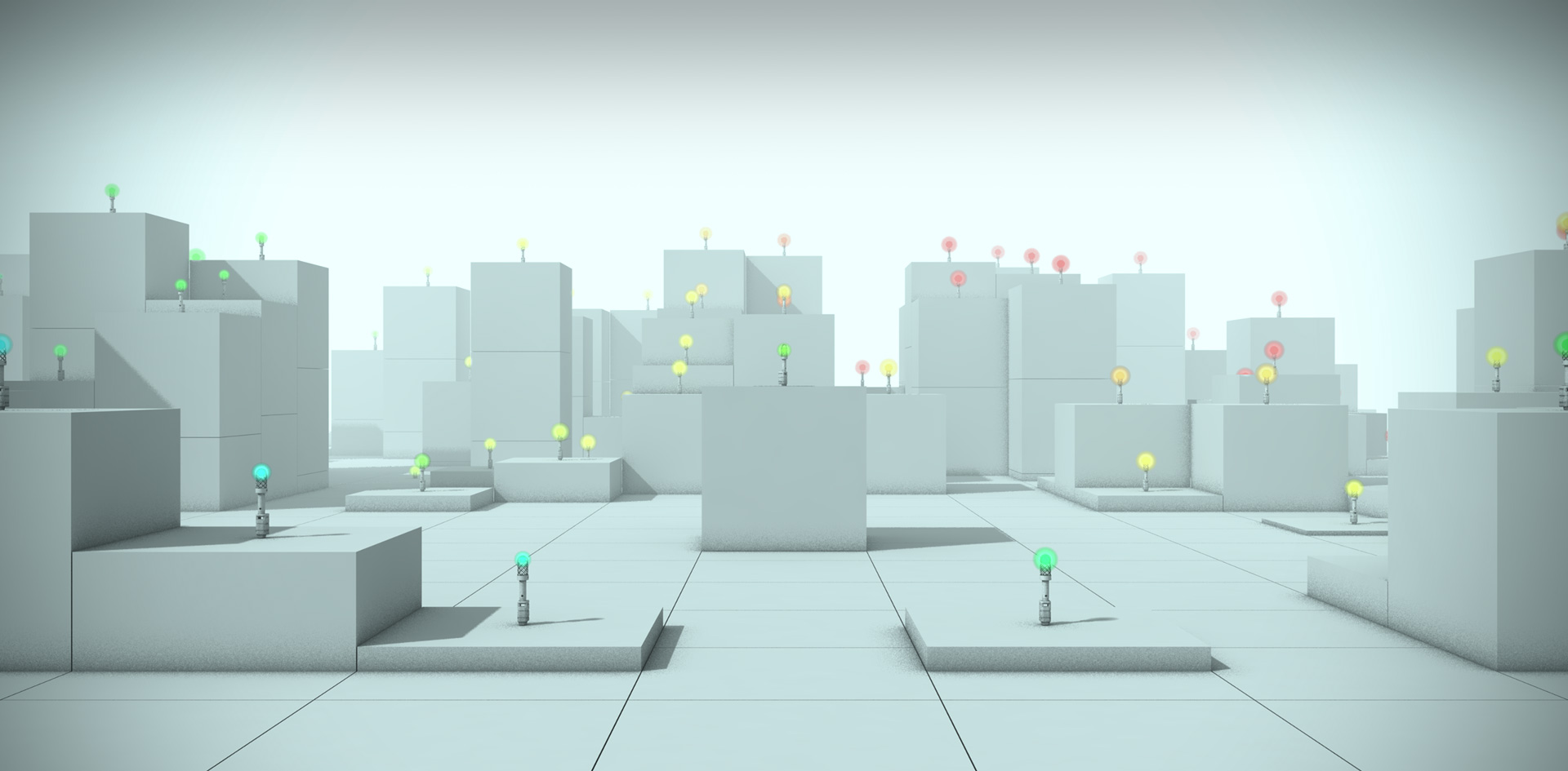 多点に並べた風センサユニットの風速表示LEDが、風速に応じた色で光ることで、気 流の風速分布をその場でリアルタイムに可 視化します。